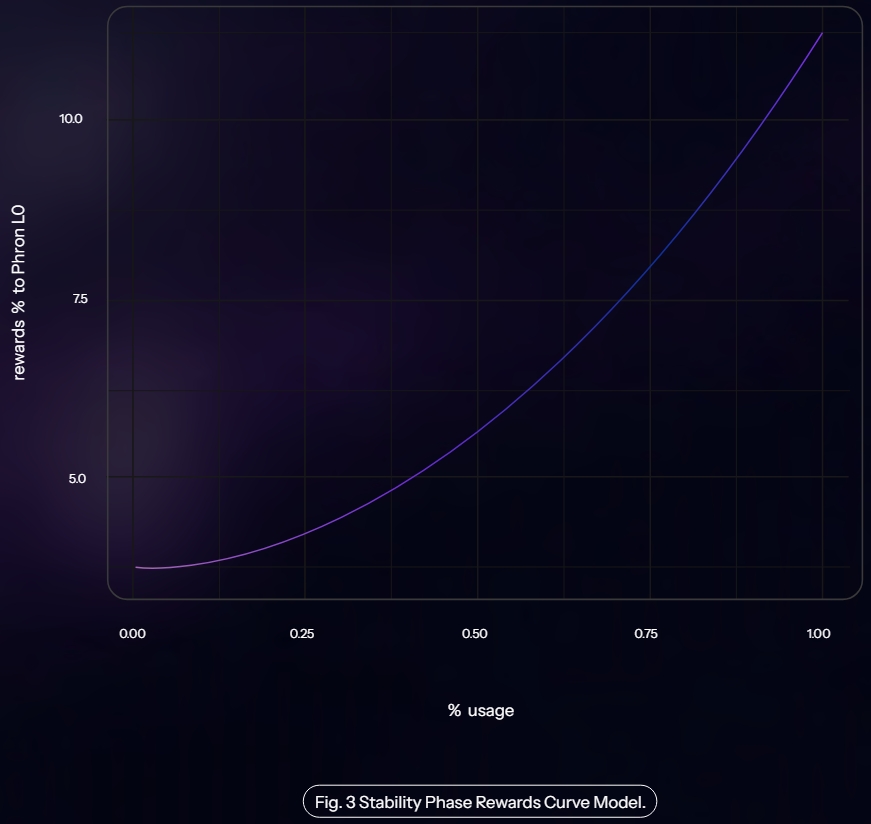As the project matures and gains stability, trust, and a wider validator base, the rewards curve can transition. This change reflects the growing confidence in the protocol’s own Layer-1 (L1) validators and a deliberate shift towards encouraging a more decentralized model. The upsloping rewards curve now incentivizes a gradual reduction in dependency on L0 nodes, rewarding the protocol for diversifying its validator network. This evolution in the incentives curve aligns with the project’s development trajectory, from relying on the foundational security of L0 nodes to fostering its autonomous, decentralized security apparatus as it matures.